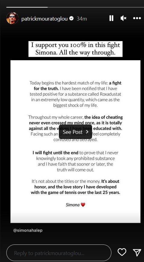 Francezul i-a transmis Simonei Halep că o susține până la capăt în lupta de a-și demonstra nevinovăția. Halep a fost găsită pozitiv la roxadustat, un medicament utilizat pentru tratamentul anemiei asociate cu boala renală cronică (CKD) la pacienții dependenți de dializă și non-dializă dependenți.