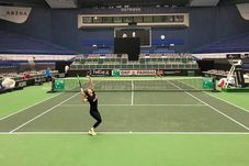 FED CUP 2019, Cehia – România. Partida de joacă în sală, pe hard, suprafața de joc fiind Novacrylic Ultracushion. Mingile folosite sunt Wilson Tour All Court.