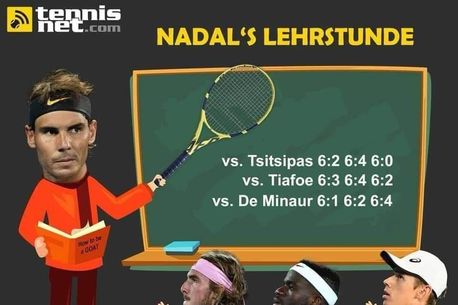 La linia de finiș însă, la testul adevărului, toți membrii NEXT Gen au picat examenul final. S-a ajuns la glume după ce Nadal i-a exectutat, în ordine, pe De Minaur, Tiafoe și Tsitsipas, John McEnroe spunându-i, mai în glumă, mai în serios ibericului, la unul dintre interviurile de pe teren – îți place să îi înfrunți pe tinerii jucători și să le transmiți un mesaj puternic. Nadal s-a eschivat, după ce la start de turneu afirma că Federer, ca și el, este acolo pentru a încerca să câștige și că speră că noua generație va ma aștepta puțin – „ei sunt aici, nu au nevoie de niciun mesaj din partea mea„. Inevitabil, o imagine distribuită de Troll Tennis s-a viralizat: Nadal apare în rol de profesor, în fața puștilor din tenis.