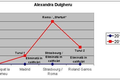 Și cea de-a treia jucătoare română care a jucat la Fed Cup, Alexandra Dulgheru, are toate motivele să fie mulțumită de parcursul sezonului pe zgură în 2015. La fel ca și Mitu, Alexandra n-a existat, practic, în circuitul profesionist al lunilor aprilie-mai. În 2014 s-a înscris la Madrid, Strasbourg și Roland Garros, plus un turneu ITF (unde a fost eliminată în „optimi”). N-a reușit să răzbească pe tabloul principal în niciunul dintre turneele WTA, fiind eliminată în primul tur al calificărilor la Madrid și în turul 2 al calificărilor la Strasbourg și Roland Garros.