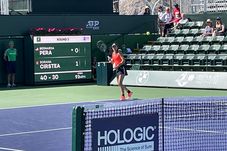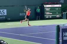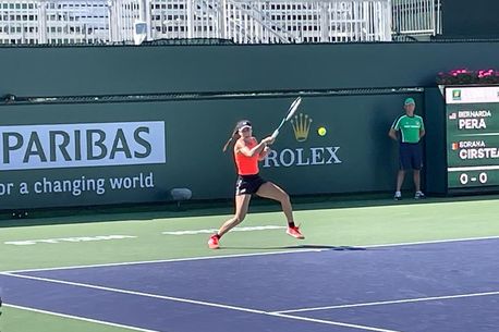 Contra croatei naturalizată de americani, Sorana Cîrstea a gândit startul de meci cu schimburi scurte și execuții la limita out-ului știind că Bernarda Pera câștigase primele două tururi de la Indian Wells după meciuri cu set decisiv. Cu numai două puncte cedate pe serviciu, Sori a făcut break în al treilea ghem ca să se desprindă la 5-1 într-un prim set în care a profitat de cele 4 duble greșeli ale numărului 43 mondial.