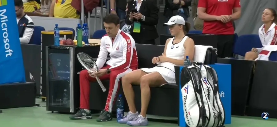 Iga Swiatek a făcut mai multe exerciții de încălzire în timp ce Andreea Prisacariu își luase pauză de vestiar! Văzând că românca întârzie, Iga s-a așezat din nou pe banca de odihnă! Stratagema Andreei nu a dat însă roade, iar Swiatek a continuat să o domine pe aceasta și în setul secund, aducând al treilea punct și inclusiv calificarea pentru Polonia la turneul final, scor 0-6, 0-6.