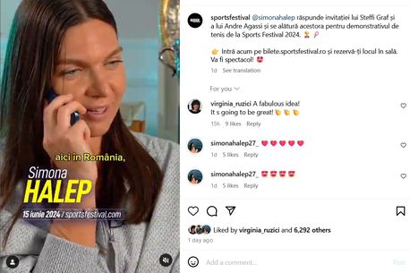 Fosta campioană de la Roland Garros 1978 a felicitat-o pe Simona Halep: „O idee fabuloasă! Va fi grozav”, i-a comentat Virginia Ruzici, pe Instagram, Simonei Halep.