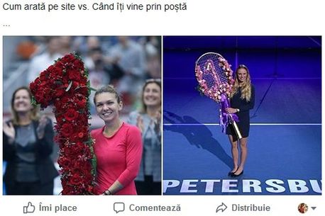 Vă amintiți cu siguranță imensul „1” din trandafiri roșii pe care Simona Halep l-a primit la Beijing, după ce a devenit în premieră lider mondial. Un cadou asemănător i-a fost dăruit și Carolinei Wozniacki în această săptămână, doar că fanii Simonei s-au amuzat pe seama acestei situații.