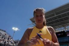 Așa cum cere tradiția la multe turnee de tenis, câștigătoarea trebuie să scrie un mesaj cu markerul pe camera de filmat, iar Kasatkina s-a gândit la iubita ei, patinatoarea Natalia Zabiiako.