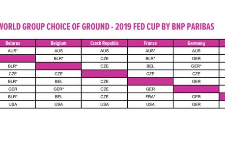 Reprezentanții Fed Cup au stabilit încă de la alcăuirea tabloului de concurs cu meciurile din primul tur al Grupei Mondiale și unde se vor desfășura toate potențialele dueluri pe mai departe, în cazul în care regula alternanței acasă / deplasare în duelurile directe nu putea fi aplicată. De pildă, România nu ar fi găzduit niciun meci, indiferent de adversară și nici nu va avea această șansă în acest sezon (vezi tabelul de mai jos). De altfel, în schema de pe siteul Fed Cup a apărut imediat în dreptul echipei Franței semnul (c) – „choise of ground” (alege terenul) în cazul unui potențial duel cu România, care, în urma rezultatelor de sâmbătă și duminică, a devenit una dintre semifinalele Fed Cup 2019. Așadar, semifinala va avea loc în Franța, pe 20 și 21 aprilie.