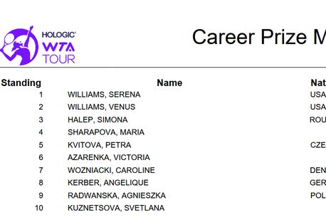 Atât în profilul Simonei Halep de pe site-ul WTA, cât și în clasamentul all-time al banilor câștigați din tenis, publicat săptămâna aceasta, premiile strânse de fostul lider WTA la turnee au rămas neatinse. Halep are în continuare un total de 40.203.437 de dolari, la această sumă fiind adăugat și premiul de la US Open.
