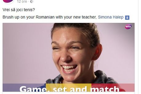 Urmăritorii cunoscutei pagini de Facebook sunt îndemnați să își perfecționeze cunoștințele de limba română cu ajutorul Simonei. În articolul postat, jucătoarea de tenis traduce mai multe fraze uzuale, des folosite în sportul alb, între care: „Sunt numărul 1 în lume la tenis”, „Vrei să joci tenis?”, „Game set și meci” sau „A fost un sezon foarte bun”.