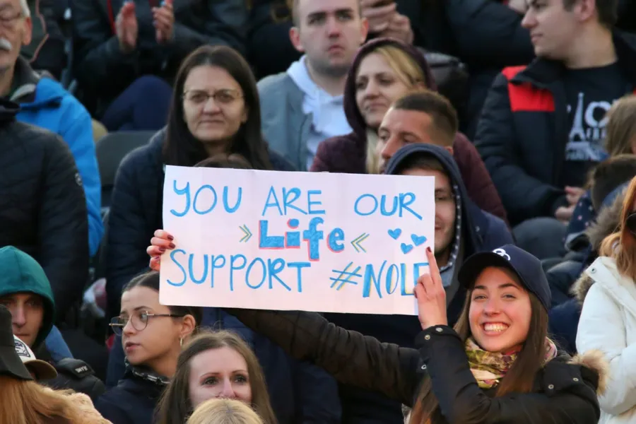 Novak Djokovic a avut și alți suporteri speciali la debutul în turneul de la Belgrad! O tânără a scris pe o pancartă mesajul „Ești viața noastră, Nole!”.