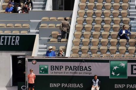 Din păcate pentru spectacoul din tenis, arena centrală de la Roland Garros e mai mult goală, Nadia Comăneci și Ion Țiriac fiind aproape singuri în zona din care asistă la meci.