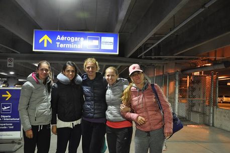 E ger cumplit, e drumul greu, dar e pentru România! Echipa de Fed Cup s-a reunit la aeroport, în Canada. Foto: Romania Fed Cup Team Facebook