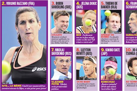 Australian Open poate genera oricând un catalog de chipuri diverse pentru oamenii însărcinați cu recrutarea figuranților pentru platourile de filmare. De toate genurile. Filme, spoturi publicitare, spectatori etc. Responsabili pentru cadrele inedite sunt zecile de fotoreporteri adunați ciorchine în loja vestelor fosforescente. După cinci zile scurse la Melbourne, ProSport vă propune un inedit Top 10 al celor mai ciudate chipuri surprinse în timpul meciurilor. Frunți încrețite, sprâncene ridicate, buze strânse, mușchi ai feței parcă deformați sau priviri ce te înfioară. De cele mai multe ori, efortul, miza meciului și încercările supraomenești îl desfigurează pe protagonist. Astfel, un jucător ajunge să poarte o mie de fețe pe parcursul unei dispute. Alții, buni psihologi, poartă măști capabile să le camufleze punctele sensibile. Pentru că expresia facială a unui jucător de tenis comunică o multitudine de informații: nivelul temerii față de adversar, loviturile vulnerabile sau gradul stării euforice. Cei mai mulți dau naștere unor strâmbături demne de orice Serviciu de Comedie, de Puiu Călinescu sau de Mr. Bean. Alții împrumută parcă portretul neliniștii lui Jaguar Paw din Apocalypto sau fizionomia înfumuratului Napoleon. Alte stări de spirit, alte tipologii, alte imagini potrivite pentru poza zilei.