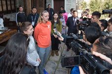 Foto: Ziariștii chinezi au venit în număr mare pentru a le intervieva pe cele două campioane. „Sunt impresionată de Shenzhen. Este la fel de mare ca țara mea”, le-a spus Simona