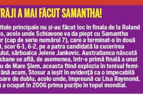 prezentă într-o finală de Mare Șlem, rezultatul ei putând fi