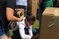 Simona s-a bucurat alături de copii de experiența de pe „șantierul” orașului de carton. Iar organizatorii au numit-o rapid „regina copiilor”.