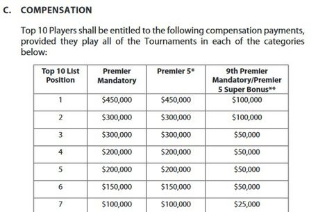 WTA acordă bonusuri consistente jucătoarelor din Top 10 care evoluează la toate cele patru turnee de categorie Premier Mandatory, cea mai privilegiată fiind, evident, ocupanta locului 1 (pe care Simona va urca luni). Astfel, Halep va încasa 450.000 de dolari doar dacă se prezintă la turneele de la Indian Wells, Miami, Madrid și Beijing, indiferent de câte meciuri va juca. În cazul în care Simona nu încheie anul pe prima poziție, dar se clasează pe podium, constănțeanca va intra oricum în posesia unui cec important, în valoare de 300.000 de dolari.