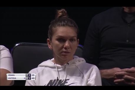 Camerele de luat vederi au insistat cu cadre ale Simonei în timpul meciului din Grupa Roșie dintre Naomi Osaka și Petra Kvitova (partidă pe care o urmărim împreună aici).