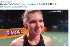 Simona Halep este la un pas de câștigarea celui mai important trofeu al carierei: trofeul de Turneul Campioanelor. La terminarea partidei, fanii care au urmărit semifinala româncei cu poloneza Radwanska, câștigată fără emoții, în minimum de seturi, 6-2, 6-2 de Simona, s-au grăbit să o felicite și să îi trimită mesajele de încurajare pentru finala-finalelor cu Serena Williams. "Va fi mai concentrată", este convinsă Simona, referindu-se la adversara sa din finală. Deocamdată, la încurajările de pe Twitter, Simona are un avantaj vizibil în fața americancei.