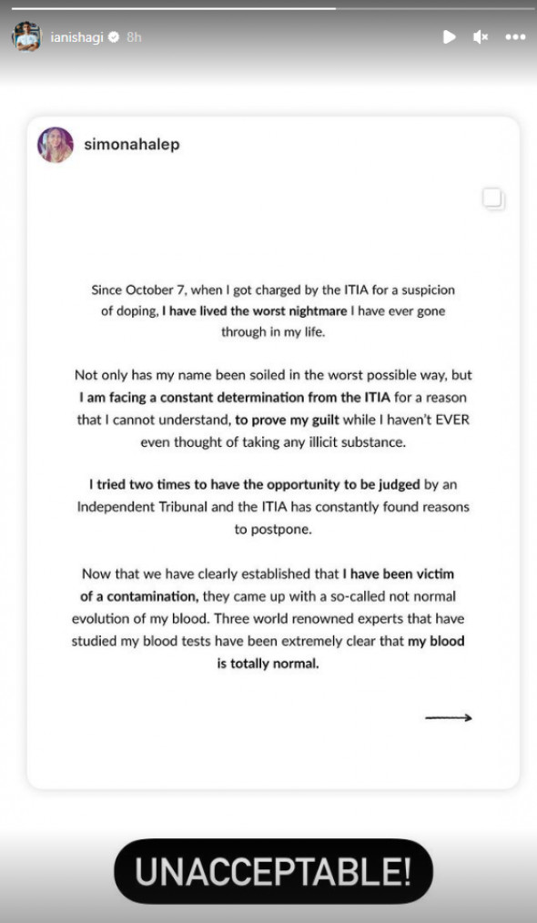 Singurul lucru la care sper în acest moment este să am posibilitatea să beneficiez de independența și imparțialitatea judecătorilor într-un tribunal care îmi va da șansa de a-mi demonstra nevinovăția. Am încredere deplină în justiție și aștept cu nerăbdare să îmi prezint cazul la audierea programată la sfârșitul lunii mai, după câteva amânări cauzate de ITIA