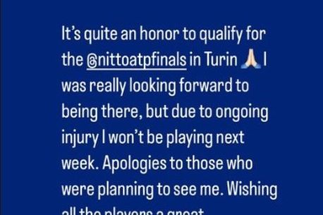 „E o adevărată onoare să mă calific la Turneul Campionilor de la Torino! De-abia așteptam să fiu acolo însă, din cauza unei accidentări, nu voi putea juca săptămâna viitoare. Îmi cer iertare celor care plănuiau să mă vadă. Le doresc tuturor jucătorilor un turneu excelent. Ne vedem în curând”, este mesajul transmis de Novak Djokovic, într-un Insta Story.