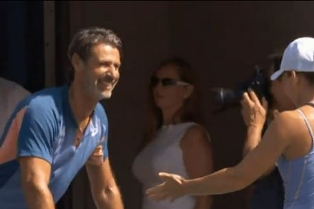 Simona Halep (România, 30 de ani) s-a dus direct spre loja în care se afla Patrick Mouratoglou (Franța, 56 de ani), după finala suprbă cu Beatriz Haddad-Maia (Brazilia, 26 de ani), scor 6-3, 2-6, 6-3.