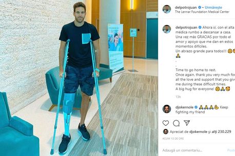 „E timpul să merg acasă să mă odihnesc. Încă o dată, vă mulțumesc foarte mult pentru toată dragostea și susținerea pe care mi le-ați acordat în această perioadă dificilă. O îmbrățișare mare pentru toată lumea!”, a scris Del Potro, pe Instagram.