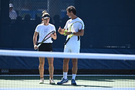 Simona Halep (ROU) and her coach Patrick Mouratoglou (FRA) during practice at the 2022 US Open at Billie Jean National Tennis Center in New York City, NY, USA, on August 27, 2022.,Image: 717120109, License: Rights-managed, Restrictions: , Model Release: no