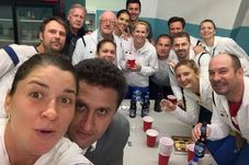 Da, știu. Noi am venit cu o cursă normală. Ne-au mai felicitat câțiva pasageri. Am mers cu un Boeing 747, dar am stat în cocoașa avionului, la etaj, unde e mai ferit, mai liniștit, mai puțină lume. Dar nu am făcut nimic în avion. Am sărbătorit după meciuri, am făcut hora pe teren, după meciul de dublu ne-au dat canadienii șampanie – ne-am adunat toți – am pus niște melodii frumoase – „Ș-altă dată o s-o facem și mai lată” și melodia lui Nicolae Furdui Iancu – „Noi suntem români„. Eu am fost DJ, aveam o boxă, I-pad-ul, am sărit puțin, am băut niște șampanie, apoi am plecat la hotel, pentru că a doua zi aveam de făcut niște bagaje uriașe! – pentru că eram plecate de mult!
