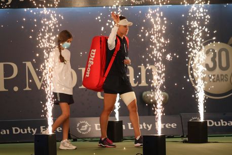 Jelena Ostapenko, emoționată la festivitatea de premiere de la Dubai. Foto: Florin Claudiu Bălțătoiu.