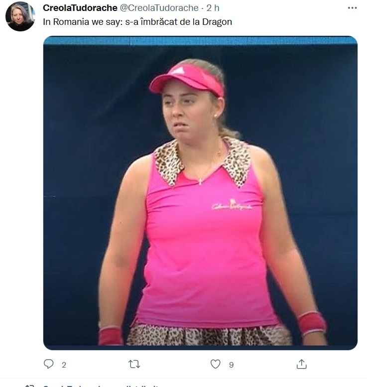 Este binecunoscut faptul că Jelena Ostapenko are o relație rece cu fanii, din cauza ieșirilor ei lipsite de fair-play! În acest context, după ce Jelena a purtat un echipament excentric la Toronto, letona a fost „taxată” de fanii tenisului din România, pe Twitter: „În România, noi spunem: s-a îmbrăcat de la Dragon!”.