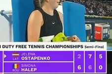 Jelena s-a mai dat în stambă în acest sezon și la turneul de la Dubai, în timpul semifinalei cu Simona. La scorul de 5-0 pentru Ostapenko în setul decisiv s-a petrecut o fază mai puțin întâlnită în tenis la un asemenea nivel. Înainte de a o învinge pe Halep, letona a izbucnit în hohote de râs.