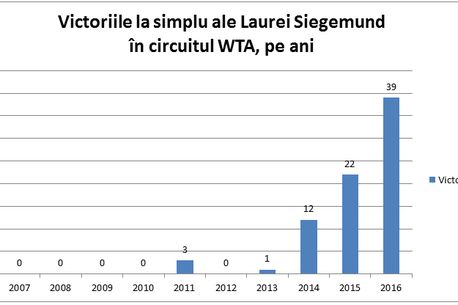 La simplu, graficul de performanțe al Laurei Siegemund arăta, până la startul lui 2014, și mai dramatic: patru victorii, în șapte ani.