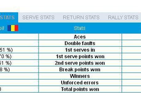 08:10 Oboseala începe să-și spună cuvântul, fiecare dintre cei doi jucători făcând câte două duble greșeli și câte două greșeli neforțate, arată statistica setului secund