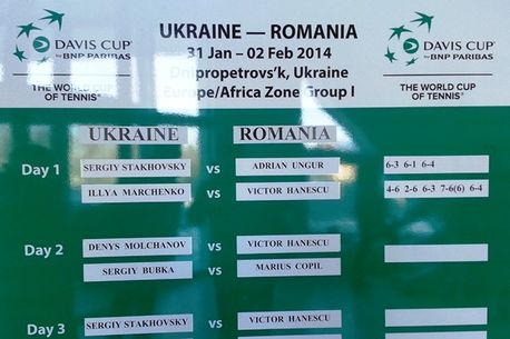 În primele două partide de simplu, disputate vineri, Stahovski l-a învins pe Ungur, 6-3, 6-1, 6-4, iar Marcenko a trecut în cinci seturi, 4-6, 2-6, 6-3, 7-6 (6), 6-4, de Victor Hănescu.