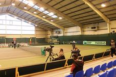 Imagine panoramică a modestei încăperi din Dnepropetrovsk unde ucrainenii s-au gândit să organizeze o partidă de Cupa Davis.