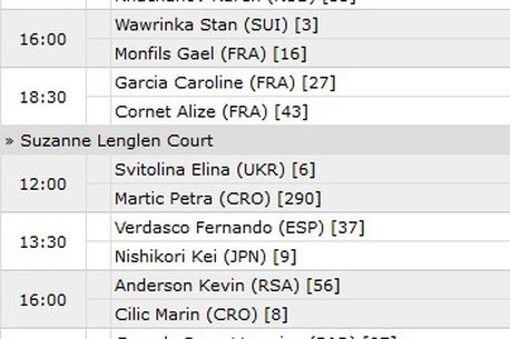 • Kristina Mladenovic (Franța, 14 WA) vs Timea Bacsinszky (Elveția, 31 WTA)