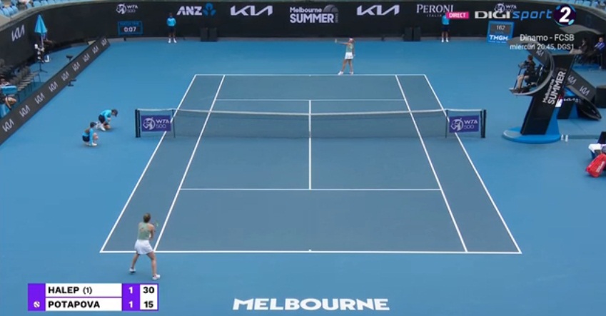 UPDATE 10:50 Halep – Potapova 6-4, 1-1! Românca egalează în actul secund după un nou game solid pe propriul serviciu.