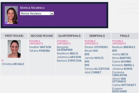 Monica Niculescu (39 WTA), singura jucătoare din România prezentă pe tabloul principal al turneului de la Hobart, și-a aflat traseul în ultimul test înainte de Australian Open. Sportiva din Slatina debutează la turneul de categorie International, dotat cu premii în valoare de 250.000 de dolari, în fața americancei Christina McHale (63 WTA), o adversară în fața căreia este favorită și nu prea.