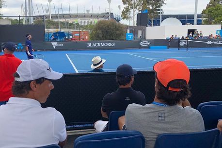 Ștafeta se dă mai departe între fiii Mallorcăi: Carlos Moya i-a fost mentor și acum îl antrenează pe Nadal, care este alături de tânărul Munar. Aici, Nadal și Moya îl privesc din tribună pe Munar, la Australian Open.