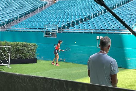 Pe gazonul arenei “Hard Rock Stadium” la numai câțiva metri de terenul central “Stadium”, Sorana a făcut încălzirea sub ochii antrenorului ei, Thomas Johansson.