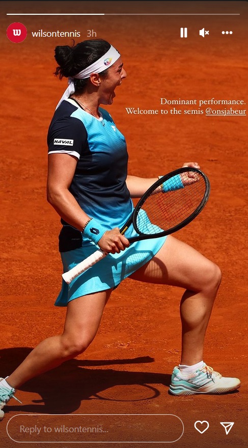 Ons Jabeur s-a impus cu 6-3, 6-2 în fața Simonei Halep și i-a impresionat pe cei de la Wilson: „Performanță dominantă! Bine ai venit în semifinale, Ons Jabeur!”, a fost mesajul transmis de sonsorul comun al celor două jucătoare.