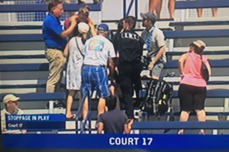 Femeia a leșinat, iar personalul medical și stewarzii au intervenit prompt. Petra Kvitova și adversara sa, Yanina Wickmayer (94 WTA), nu au avut de ales: au luat pe scaune așteptând să poată relua partida, la scorul de 6-1 și 1-1 în favoarea cehoacei, de două ori campioană la Wimbledon.
