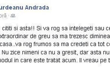 Aceasta a revenit, o oră mai târziu, cu un alt mesaj: „Și vă rog să înțelegeți sau cel puțin să încercați… Că îmi este extraordinar de greu să mă trezesc de dimineață și să știu că tatăl meu nu este acasă. Vă rog frumos să mă credeți că tot ce a fost, a fost doar o greșeală. Nu zice nimeni că nu a greșit, dar asta nu înseamnă că trebuie să fie tratat în modul în care este tratat acum. Îl vreau pe tata înapoi pentru că îl iubesc”.