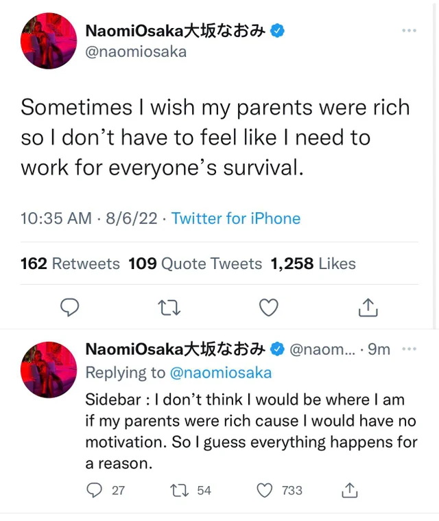 Naomi Osaka, cea mai bogată jucătoare de tenis, a stârnit un val de indignare în mediul online, după ce s-a plâns că e nevoită să își întrețină familia: „Câteodată îmi doresc ca părinții mei să fi fost bogați, pentru a nu mai fi nevoită să muncesc pentru supraviețuirea tuturor!”.