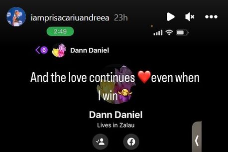 Sportiva i-a răspuns cu o ironie pariorului: „Iar dragostea continuă! Chiar și atunci când câștig meciul”, a scris Andreea Prisacariu pe contul ei de Instagram.