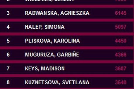 La vârful ierarhiei s-au mai produs și alte mutări spectaculoase! Johanna Konta a devenit prima britanică ce intră în Top 10 WTA în ultimii 32 de ani, reușind un salt de 5 locuri, de pe 14 WTA până pe 9 WTA! În același timp, o jucătoare obișnuită cu prezența în Top 10 a părăsit elita, este vorba despre Carla Suarez Navarro (Spania, 12 WTA).