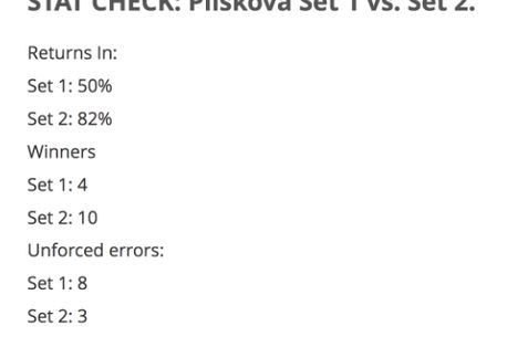 Detaliul scos în evidență de Courtney Kguyen. WTA Insider: Pliskova a îmbunătățit cifrele statistice la toate capitolele relevante în setul doi, față de primul.