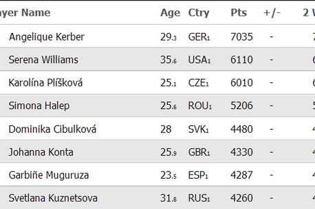 Serena Williams spune „La Revedere” primei poziții în clasamentul WTA. Americanca promite că revine în tenis, la anul, după ce va deveni mamă, sperând să repete și chiar să depășească reușitele belgiencei Kim Clijsters, care a revenit în tenis după naștere și a câștigat de nicăieri US Open-ul. Deocamdată, tenisul feminin intră într-o nouă eră, în care moștenitoare a coroanei este, grație super-rezultatelor din 2016, Angie Kerber. Pentru Karolina Pliskova (liderul la zi la puncte câștigate în 2017), Wozniacki, Konta, Mladenovic, Svitolina, Venus Williams, Kuznetsova și Simona Halep (pentru a lua în ordine Top 8-ul sezonului), tabloul sportului și reperele s-au schimbat radical. Apar posibilități, oportunități, șanse, așteptări.