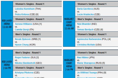 Organizatorii turneului de la Australian Open s-au mișcat rapid și au anunțat încă de sâmbătă dimineață programul primei zile a ediției 2016 a "Open-ului Vesel" - a 104-a din istoria turneului.