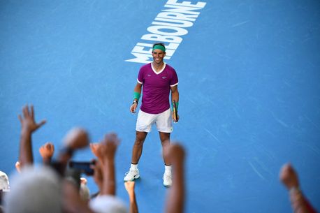 Rafael Nadal celebrates winning the third set during the Men's Singles final Australian Open, Day Fourteen, Tennis, Melbourne Park, Melbourne, Australia - 30 Jan 2022,Image: 657673878, License: Rights-managed, Restrictions: , Model Release: no, Credit line: Profimedia